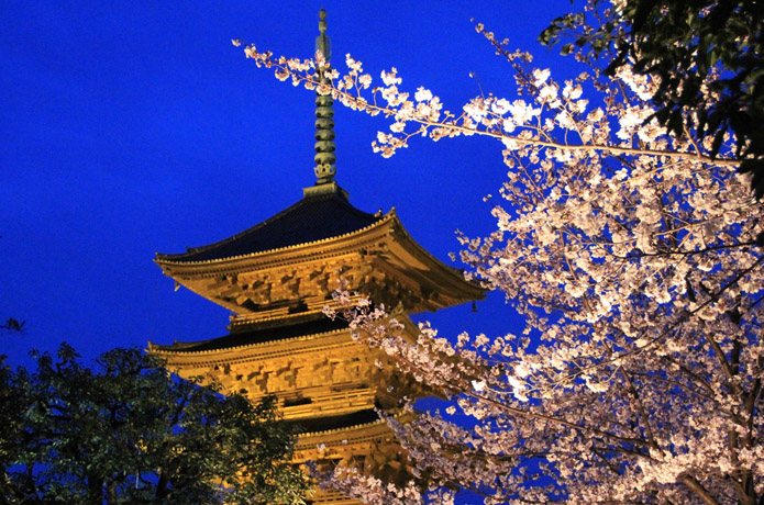 京の四季 夜桜 東寺 不二桜のライトアップ