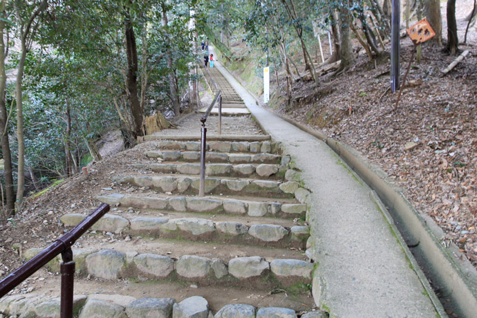 櫟谷・宗像神社(松尾大社の摂社)の境内にある入園券売り場を通ると、さっそく山道になります。