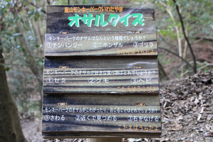 約20分くらいの登りですが、途中にはお猿に関するクイズや資料の看板が並んでいて、上に着くまでにかなりお勉強ができるようになっています。