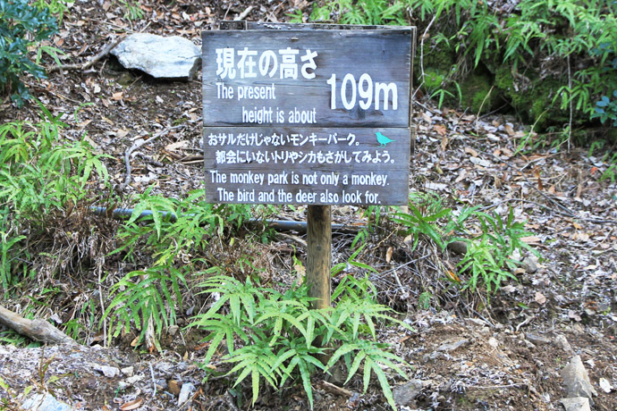 ここの正式名称は、「嵐山モンキーパークいわたやま」といい、嵐山の支峰・岩田山にある6000平方メートルの野猿公園になっています。(ところどころで現在の高さも分かります。)