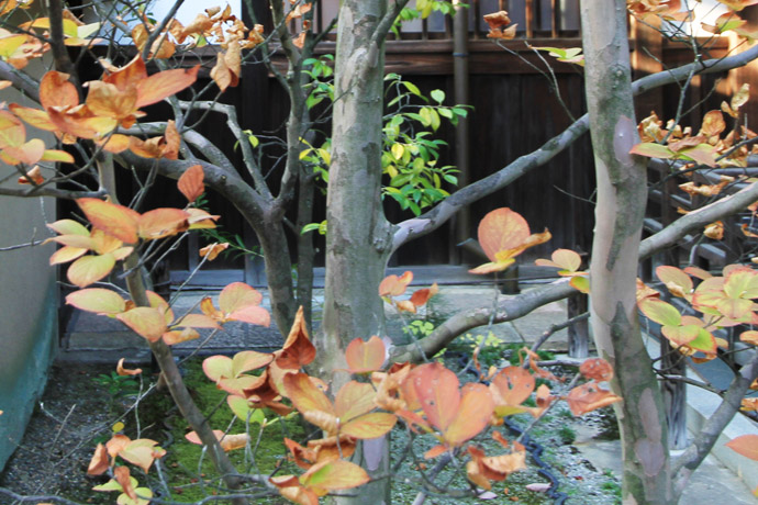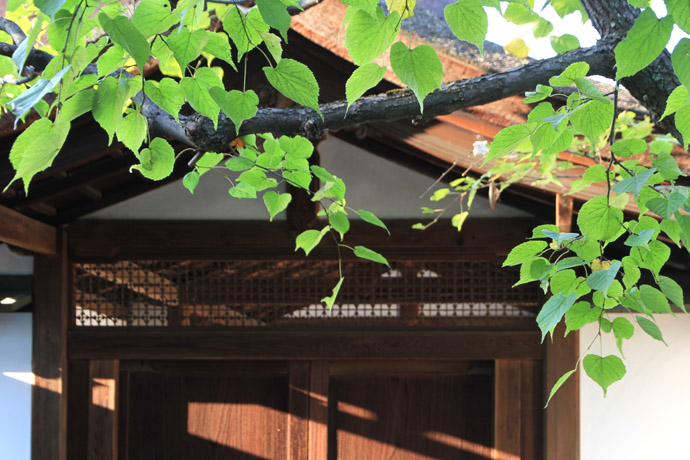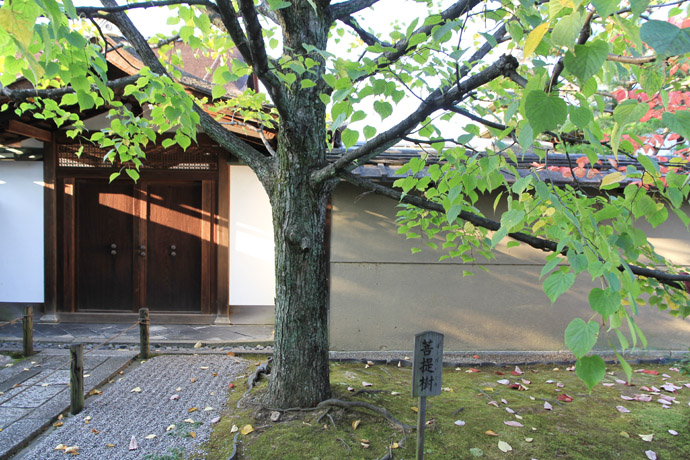 門を入ると左から、菩提樹、山法師、沙羅双樹が並んでいます。この前を右に行くと、