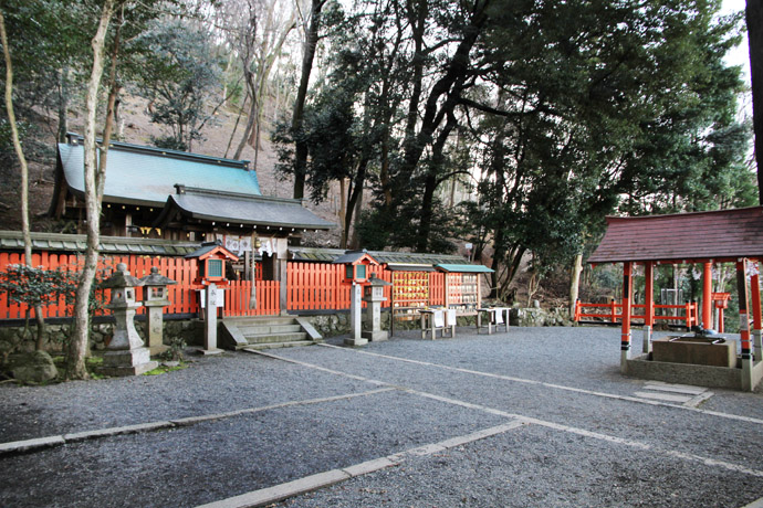 平安時代(927年)の「延喜式」神名帳には、山城国葛野郡の「櫟谷神社」と記載され、櫟谷社が式内社であったことが分かります。(手水鉢は、江戸時代の1643年に角倉了以の孫・吉田厳昭が寄進したものです。)