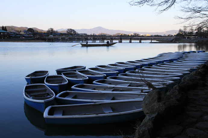 大堰川の右岸はボート乗り場がありますが、いつも人は少ないです。夕方川の写真を撮るときは、左岸では逆光になってあまりうまく撮れません。茶店もありますので、一度はゆっくりしたいところですね。