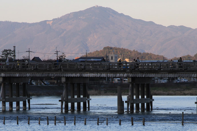 渡月橋から下流(桂川) 比叡山から大文字山までが見えています。