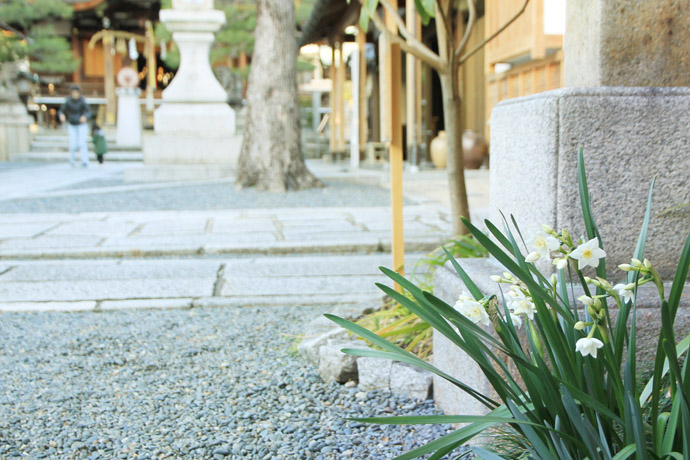 3月のことですが、梅の花を見に北野天満宮を訪れた後、すぐ近くの大将軍八神社に来ました。妖怪ストリートとしておなじみの大将軍商店街に面して鳥居があります。