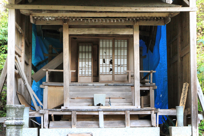 拝殿と本殿があります。天正4年(1576年)日諦僧正が、この地で「日輪の滝」、「月輪の滝」を見て、七面大明神(七面大天女)を勧請したと伝えられています。本尊は、お祭り以外の日は涌泉寺に安置されているそうです。