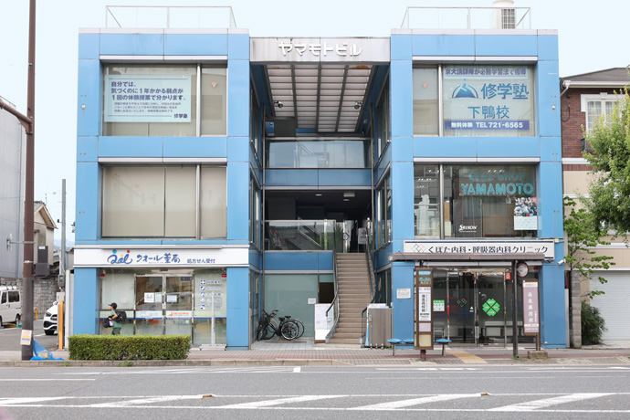 「ヤマモトビル」に「ゴルフショップヤマモト」、「クオール薬局下鴨店」、「くぼた内科・呼吸器内科クリニック」、進学塾の「修学塾 下鴨校」が入っています。
