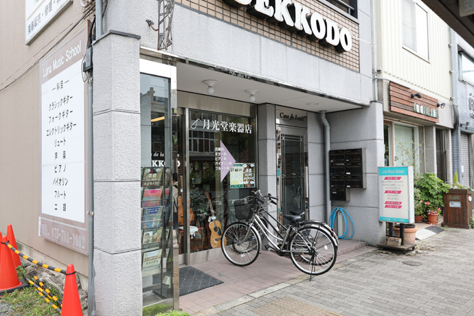 「月光堂楽器店 音楽教室」 戦後まもなくギター専門店として創業、現在では各種音楽教室やコンサートも開催しています。前にバス停「洛北高校前」があり、横にランタナが咲いていました(最後の写真)。