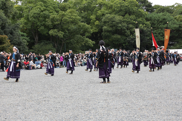 2.明治維新時代 最初は「維新勤王隊列」の鼓笛隊で、明治維新の際、丹波の国北桑田郡山国村(現:京都市右京区京北)の有志が山国隊を組織し、官軍に参加した当時の行装を模したものです。
