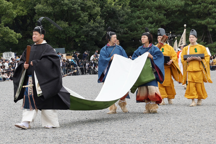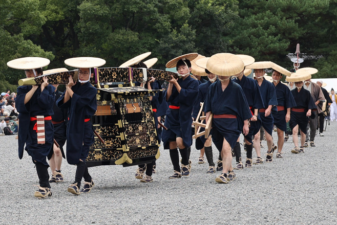 参勤交代の大名行列のようですが、こちらは京都あるいは朝廷を中心としてみた時代風俗です。城使が乗る駕籠や、朝廷に献上する品々が続きます。