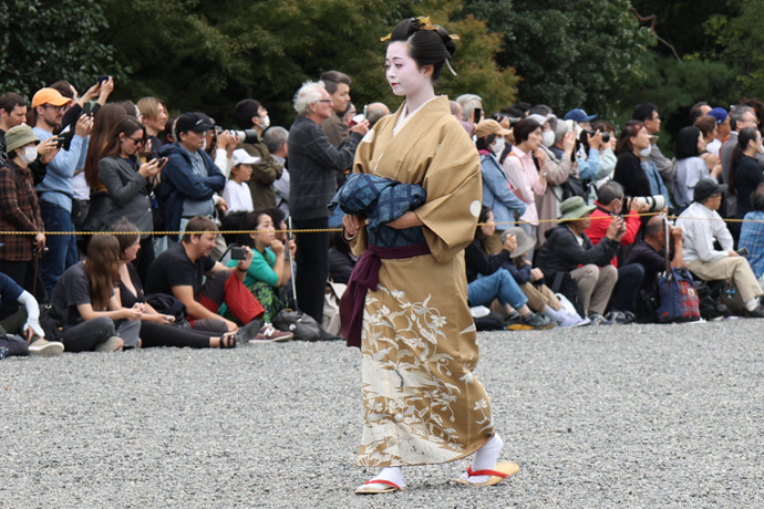 カメラマンによっては女性の顔のアップばかり撮っている人もいますが、時代祭は衣装がメインなので、私は必ず全身を撮るようにしています。