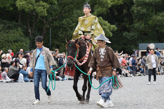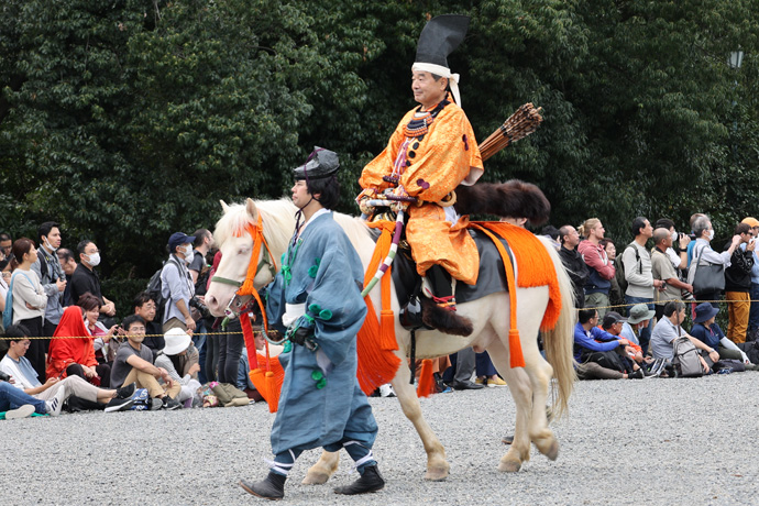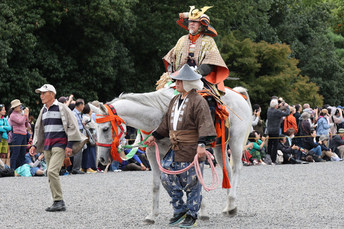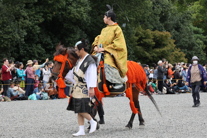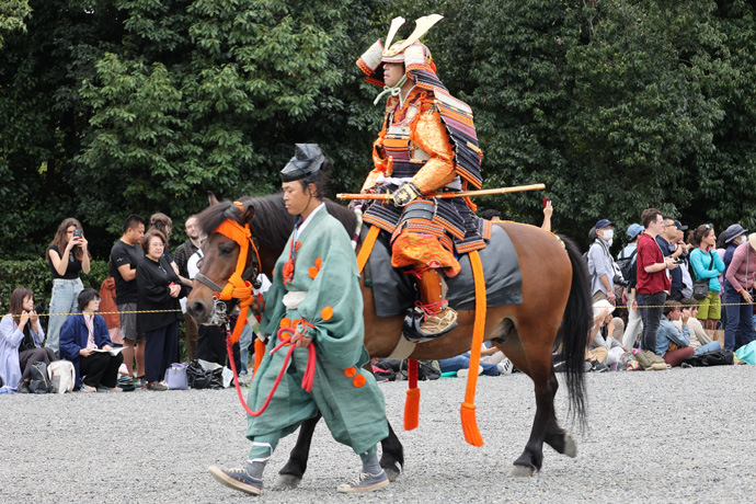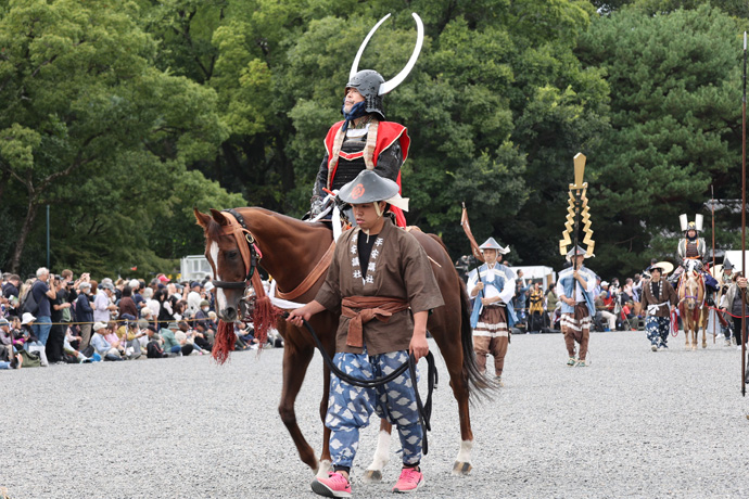 2007年の桓武天皇1200年記念大祭を機に加わりました。幕府の執政にあたる三管領・四職の主要氏族が従います。管領が斯波(しば)、細川(下の写真)、畠山の3家から、また侍所所司(長官)に任命される四職は、赤松、一色、山名、京極の4家です。