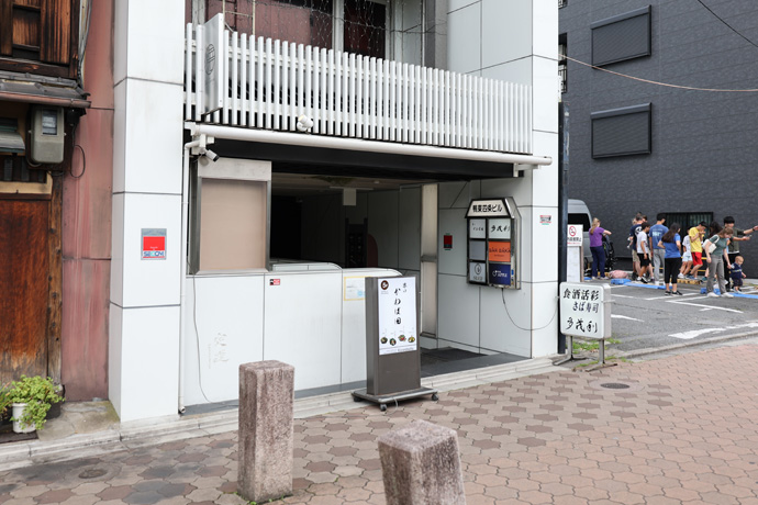 一昨日の記事につづいて、祇園白川(白川南通)を大和大路通(TOP)から西に歩きます。交差点の北西は「ルイ一世ビル」、1階の「天のめし 祇園白川店」は今年の6月1日にオープンした天ぷらのお店です。