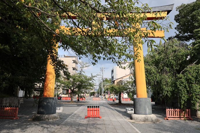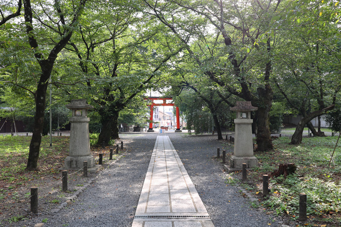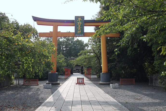 9月の祭礼は1日月次祭、14日御鎮座記念祭・奉灯祭、15日末社・八幡社例祭。23日(秋分の日)には歴代の皇族を祀る皇居の皇霊殿で秋季皇霊祭が斎行され、平野神社では秋季皇霊殿遥拝式が行われます。このあと、再び西大路通に戻りました。