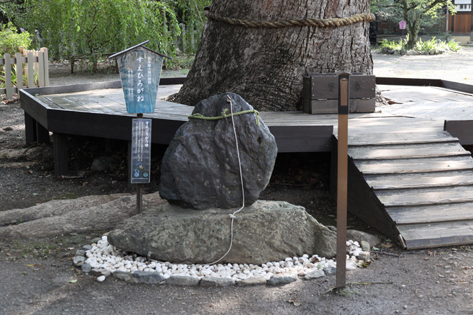 大クスノキの根本に磁鉄鉱の「すえひろがね」があります。