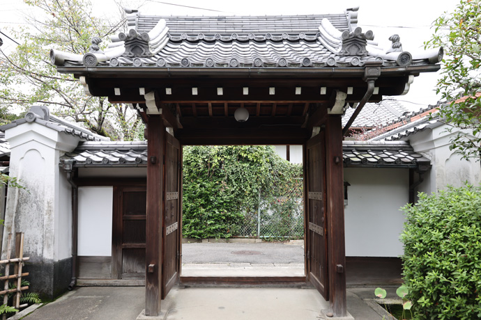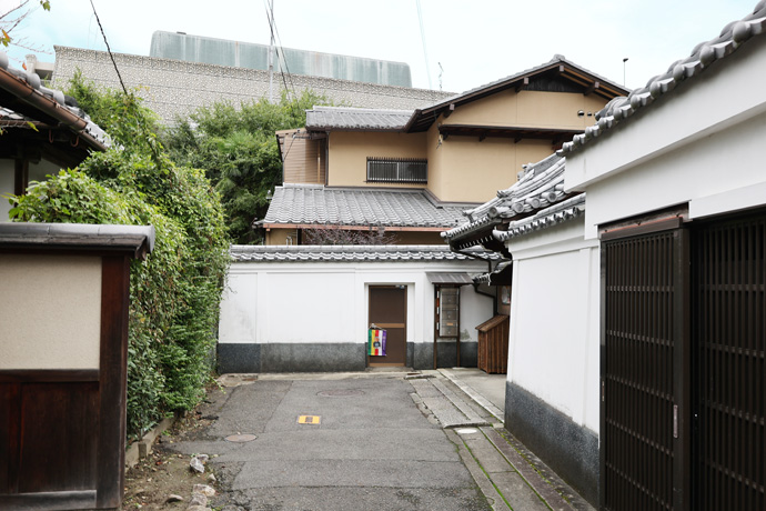 この場所は五条バイパスの高架の南にあり、上の写真の屋根の上に大谷本廟の無量寿堂が見えます。「山門」は西に向いています。