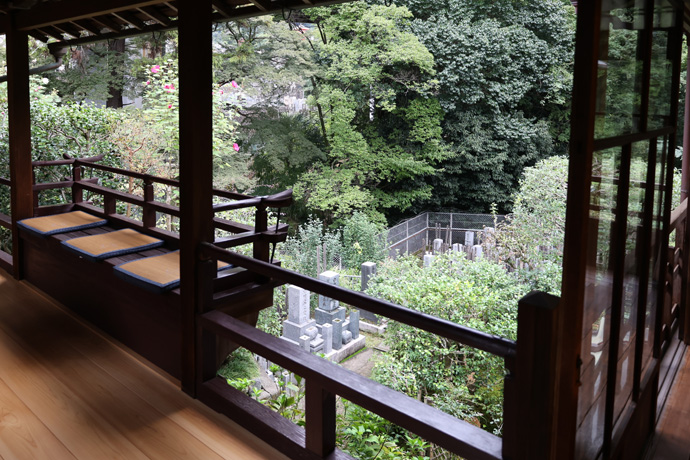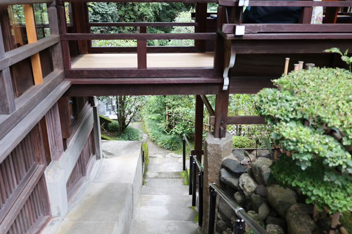 その後、塔頭は江戸時代後期の「天明の大火」(1788年)で類焼したものの、翌年には再建されました。しかし、その後荒廃したといわれています。(書院の廊下の突き当りは崖になっていて、玄関から上ったのは建物の2階だと分かりました。)