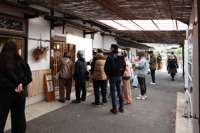 「呂川茶屋」 しそ漬け、しば漬け、ゆずの皮、七味、しそジュースなどを販売しています。手前では鯖ずし、向うでは美味しそうな「焼きだんご」を売っていました。