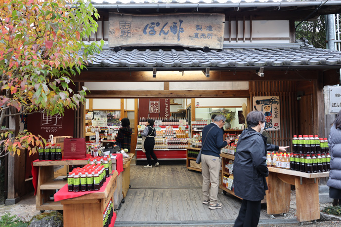 「志野」 ぽん酢やごまだれなど京風ドレッシング、しそジュースのお店です。隣の松門とこの店は同じ経営です。