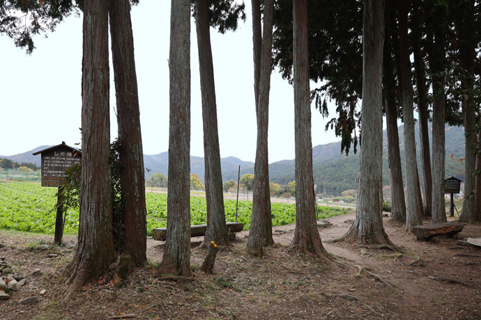 斜面に志ば久の「しそ畑」があり、秋にはコスモス、菜の花が植えられます。しば漬けの名称は、平安時代に寂光院に隠棲した建礼門院が里人の献上した夏野菜を塩漬けにしたのを、こう呼んだのが始まりといわれています。