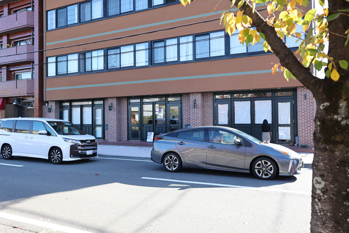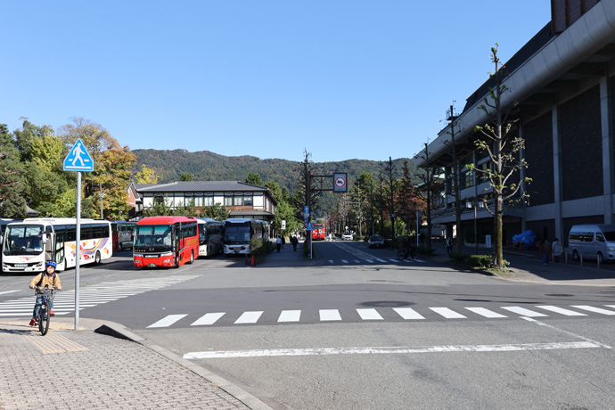 東の方、左は「岡崎公園バス駐車場」、その向うに2017年に京都平安振興財団が開設した 商業施設「十二十二(とにとに)」が見えます。名称は平安神宮の祭礼・時代祭の10月22日からだそうです。