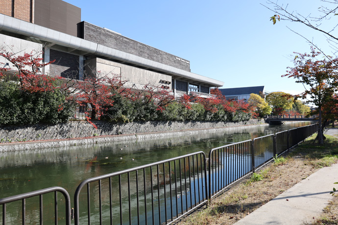 下は東(上流)で、正面は「京都市武道センター」。ここから右手の疏水に沿う「冷泉通」を歩きます。建物の詳しい説明は省略します。