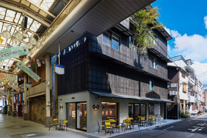 「DELTA / KYOTOGRAPHIE Permanent Space」、京都を中心に国際的な写真展を企画するKYOTOGRAPHIEによる、ギャラリー、ビストロ、宿泊施設などを併設するプロジェクトスペースです。外にはテラス席もあります。