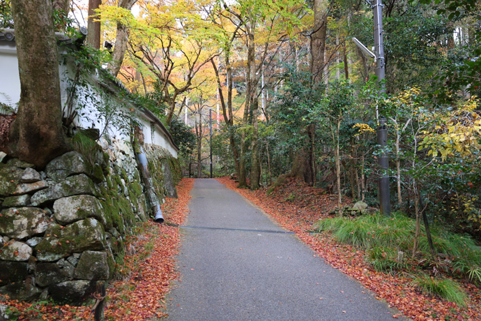 しばらく三千院の石垣に沿って上ります。誰もいなくて少し寂しいですが風情のある道です。