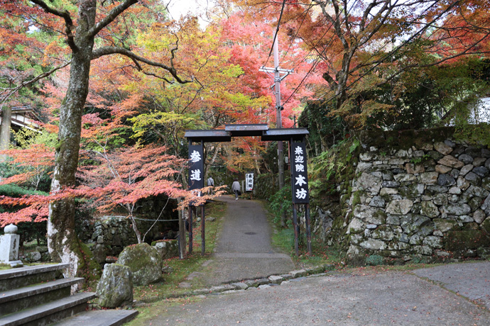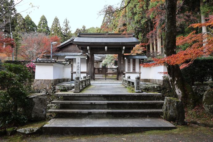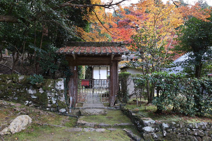 三千院の「南門」、 三千院の庭園の出口(西方門)を出たところにある円融房(蔵)の横にある門で、車イスの入口でもあります。