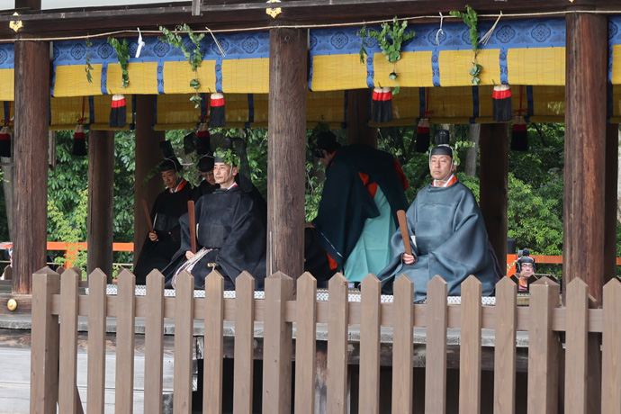 最初に神馬の2頭が走り、乗尻は競馬と同様に賀茂県主同族会の若者です。神馬の2頭が走ったあと、勅使は退席します。