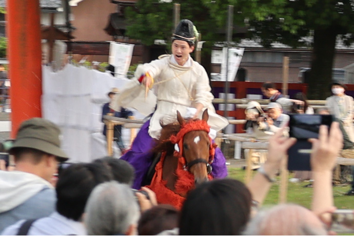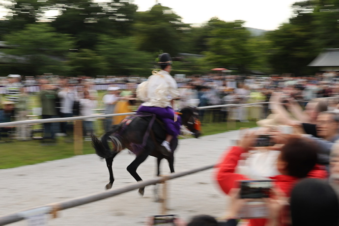 対して、追馬の乗尻が、待てー!という仕草をします。第一の番は左方が必ず勝つようになっています。その理由は、京都所司代が奉納した馬が走ったとき、その馬に勝つわけにはいかなかったという逸話からとか。第二の番からは真剣勝負です。
