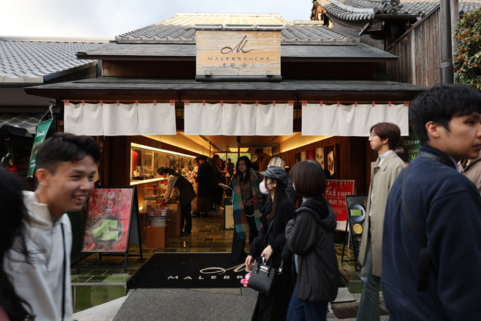 「MALEBRANCHE(マールブランシュ)清水坂店」 和風の焼菓子や冷菓、ケーキもあります。「茶の華」は宇治の厳選茶葉を使い、ホワイトチョコレートを包んだお濃茶ラングドシャです。