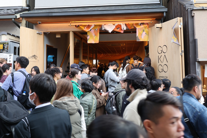 「GOKAGO」 日本茶専門店&日本茶スタンドです。京都産のお茶・茶器などを取り揃え、一杯一杯丁寧に点てた抹茶を使った抹茶ラテを頂けます。左の階段の2階には和牛鉄板焼きの「KIYOMIZY創(SOU)」があります。