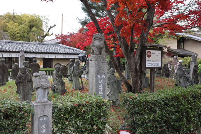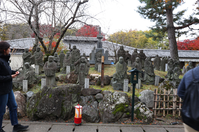 「嵐山羅漢」 ここに羅漢像が置かれたのは古いことではなく、宝厳院の呼び掛けで、阪神淡路大震災(1995年)の犠牲者を供養するため、全国の人々が石仏を寄進したの始まりです。