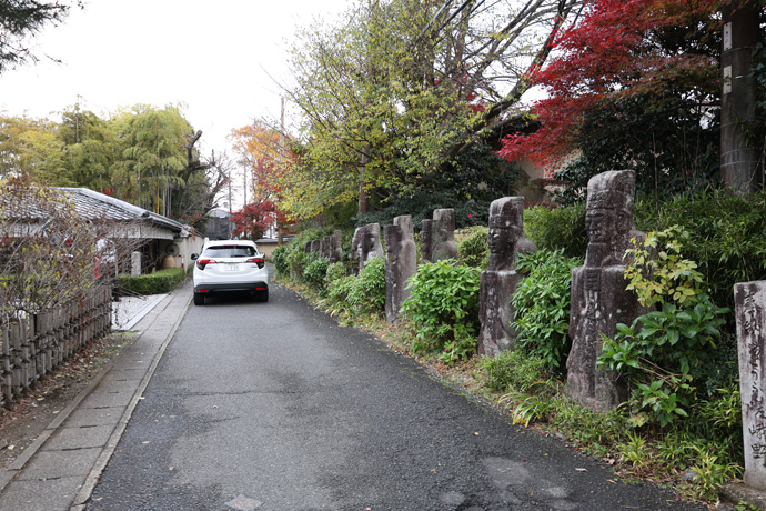 宝厳院を訪れたあと、外塀の門の前に「歌碑」や「句碑」が並んでいます。この右(南)に、