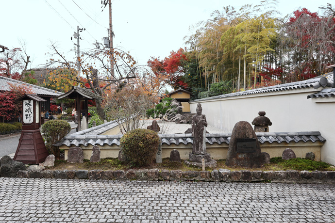 上の石標は門を入って玄関の左に見えます。ここから宝厳院の前の道に戻って、天龍寺に向かいます。