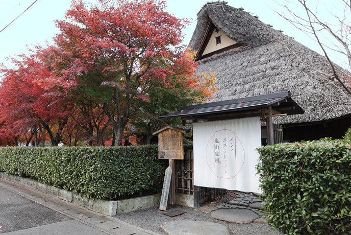 同じ通りの隣には「パンとエスプレッソと嵐山庭園」、東京や大阪などに13店舗を構える[パンとエスプレッソと]の京都1号店です。手前はベーカリーの「パンと」です。