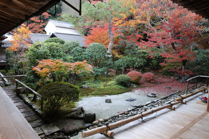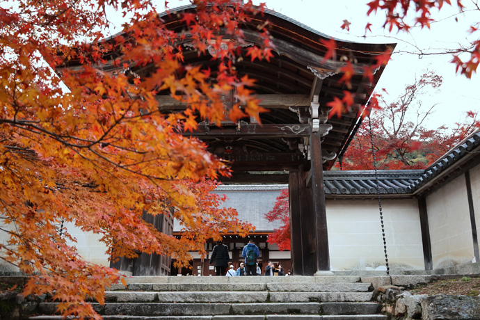 唐門(勅使門)は1988年の再建。南北朝時代(1333-1392)に焼失し、足利義教によって再建。室町時代の応仁の乱(1467-1477)でも焼失、その後荒廃しました。本堂は1510年に三條西実隆により再建、数年前に改修されました(京都市指定文化財)。