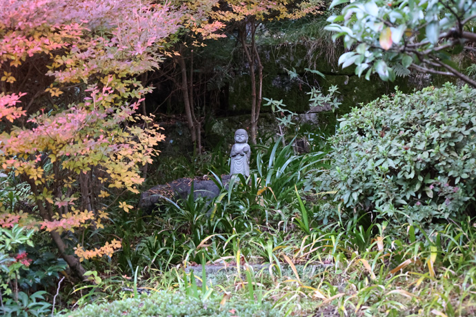 本堂の裏の山裾に最近造られた「六道六地蔵の庭」があります。六道とは、迷いあるものが輪廻する6種類の苦しみに満ちた世界のことで、天道、人間道、修羅道、畜生道、餓鬼道、地獄道を指します。下は「人間能化大清浄地蔵菩薩」。