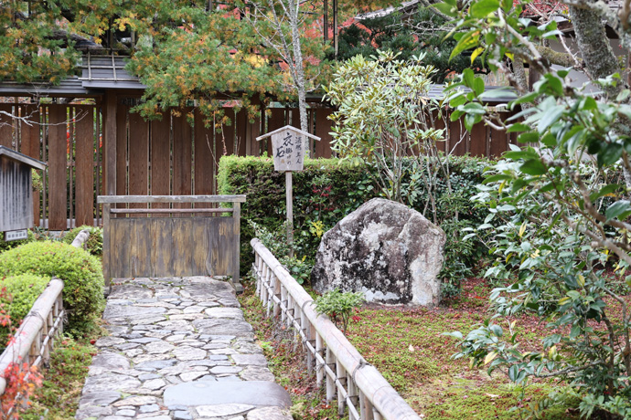 「宝泉院」は勝林院の僧坊および天台声明(しょうみょう)の道場としてとして創建されました。 山門の正面は客殿の前庭で、右に大原問答に臨んだ「法然衣掛け石」があります。