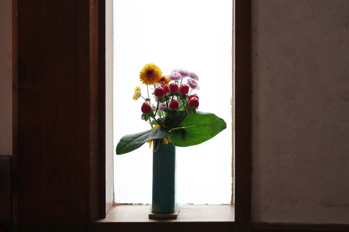 室内のいたる所に花が飾られています。客殿の廊下の足元にもきれいな花がありましたが、気付く方はほとんどいません。