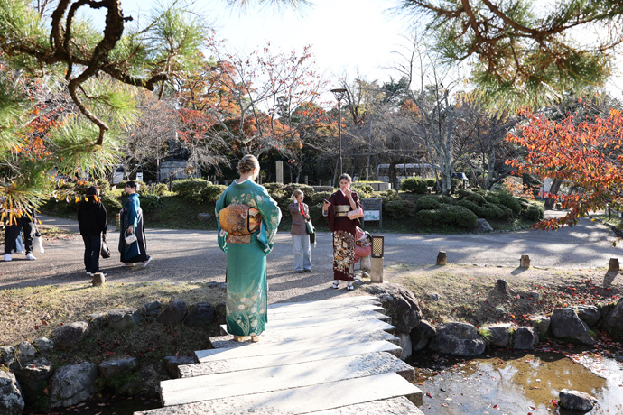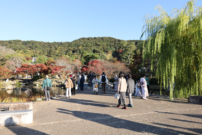 穏やかな秋の日に着物姿の人が多いですね。