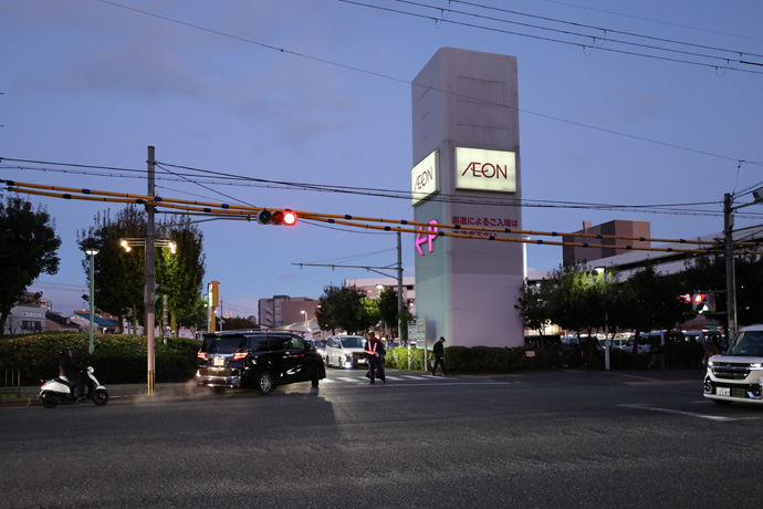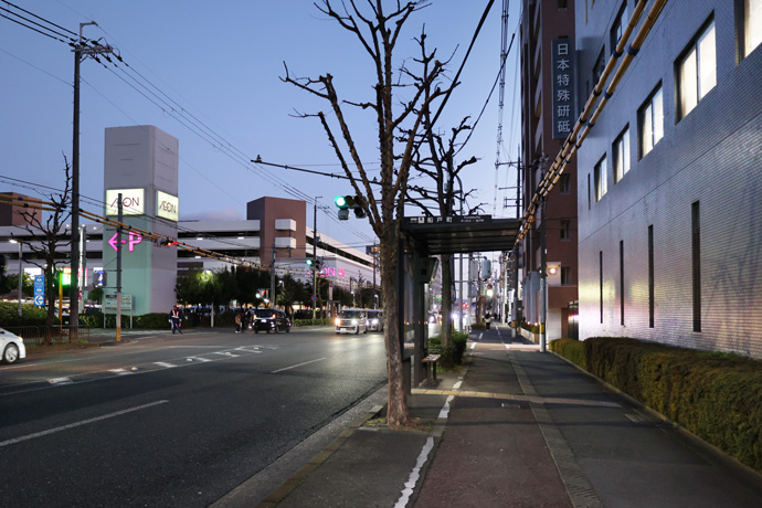 バス停「船戸町」 船戸町は西にある西高瀬川の西岸地域、ここは南区吉祥院御池町で停留所名の理由は分かりません。ちなみに、船戸という地名は全国にあり、舟運で栄えた町を意味します。向うに「イオン京都洛南ショッピングセンター」が見えます。