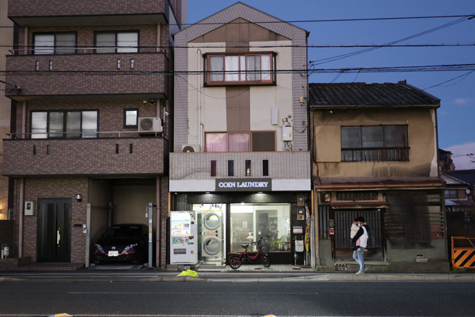 「コインランドリー 洛南イオン店」 おそらく個人経営のコインランドリーで、洛南イオンは後で出てくるショッピングモールです。