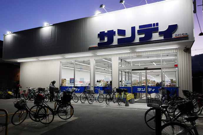 「サンディ 京都吉祥院店」 サンディはディスカウントスーパーで、1980年に設立され大阪市淀川区に本社があります。京阪神を中心とした関西圏を中心に店舗を展開、埼玉県や東京都、岡山県にも出店しています。