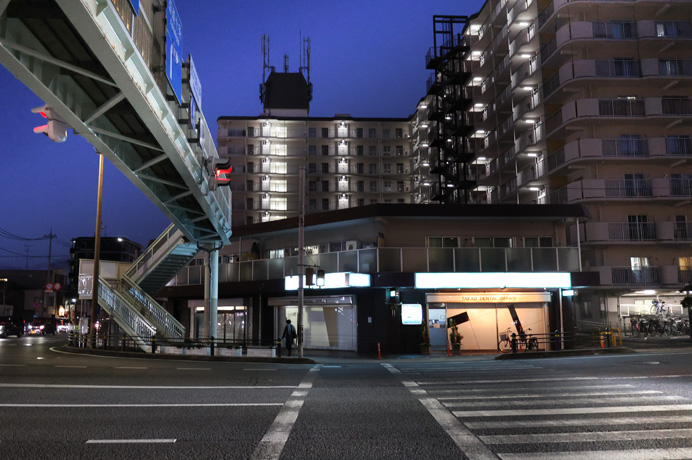 先日の記事の続きで西大路通を南に歩きます。TOPは九条通(左)との交差点で、既に日が暮れているのはこの日の最後に撮った写真だからです。九条通は、平安京の南端の九条大路にあたります。