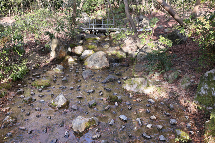 散策路の途中から琵琶湖疏水の水が池に流れ込んでいます。先のイチモンジタナゴは滋賀県では、湖北地方のごく一部で確認されているだけです。。琵琶湖で生息数が激減した理由は外来種や生活場所のヨシ原の減少、水質悪化、餌の減少などといわれています。