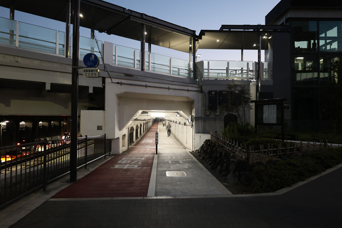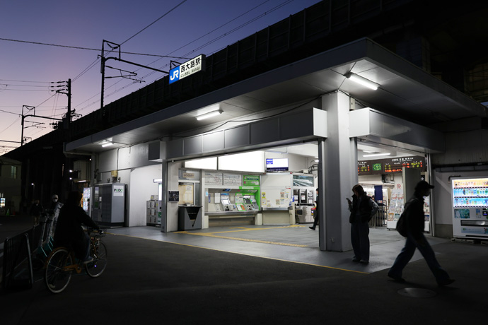 高架橋をくぐると「JR西大路駅」の入口があります。昭和13年(1938)京都市電西大路線が西大路九条駅から延長されたのに合わせて開業しました。快速・新快速は通過、1日当たりの利用者は平均約14,000人前後です。