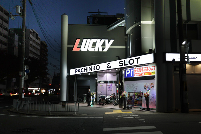 「パチンコ西大路ラッキー」 パチンコ168台、スロット84台、駐車場 24台分あり、入場には整理券が必要でモバイル抽選での配布となります。パチンコ・パチスロともに、台の移動や出玉の共有が可能だそうです。