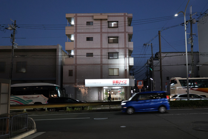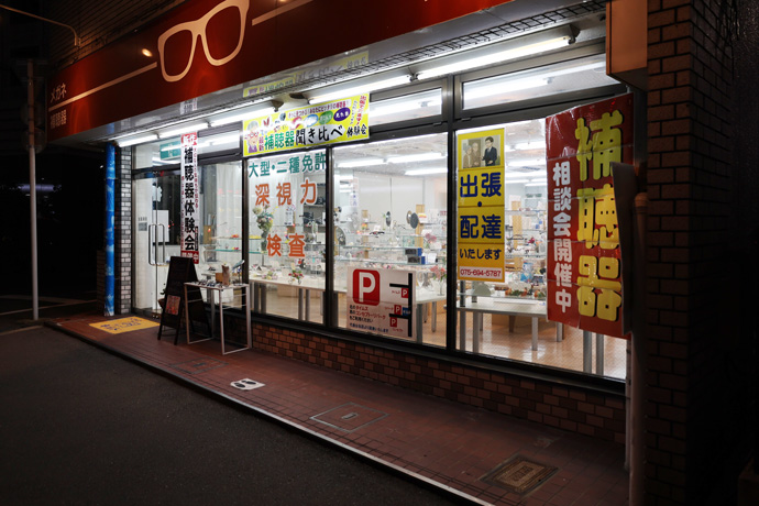 「メガネのギルド洛南店」 メガネフレームやレンズ、サングラス、補聴器の販売や修理を行っています。メガネの無料洗浄、修理、出張サービスがあります。最後の写真は九条通、暗くなったのでこの日はここから帰宅しました。